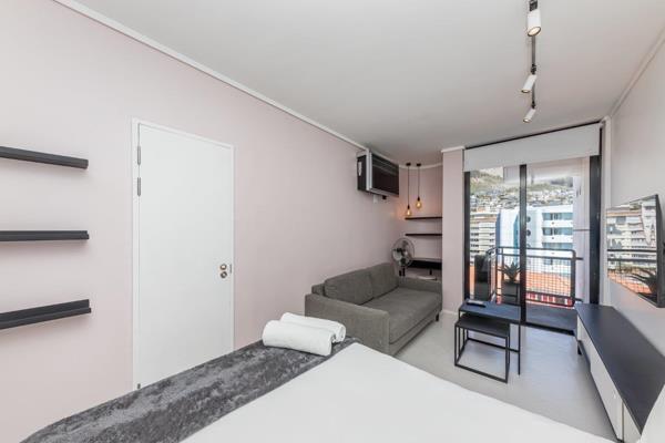 Set on a high floor in The Flamingo, this studio apartment captures impressive views of Lions Head from its own private balcony.