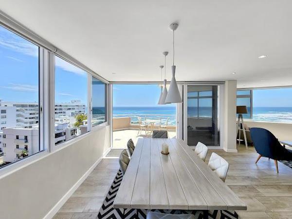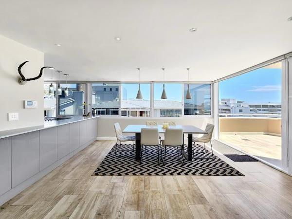 The spacious open-plan living and dining area flows effortlessly onto large windows that frame sweeping sea views, creating the perfect backdrop for everyday living and entertaining. The modern kitchen is sleek and functional, ideal for both quick meals and hosting guests.