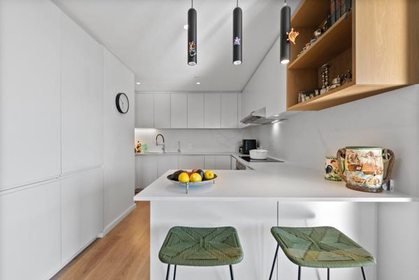 Perfectly positioned on the Atlantic Seaboard, this elegant residence blends modern design with effortless comfort. The open-plan living area is bathed in natural light and features a fully integrated kitchen with premium appliances, ideal for both everyday living and stylish entertaining.