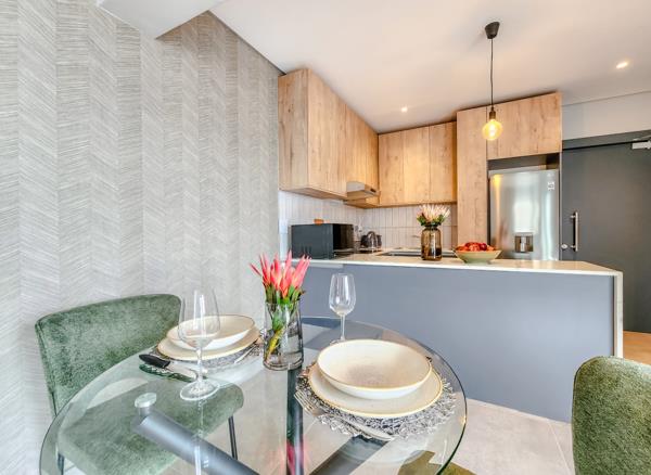 The open-plan layout features a modern kitchen with high-end fittings that flows seamlessly into an inviting living area, framed by vistas of Lions Head and Signal Hill from your private patio where you can enjoy your morning coffee or an evening glass of wine. This small apartment block is centrally located, yet set back from the main road offering both convenience and, a sense of calm.