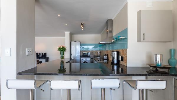 The open-plan kitchen, dining, and living area flows seamlessly onto a large covered balcony, ideal for year-round entertaining with sweeping views from the ocean and Promenade to Signal Hill.