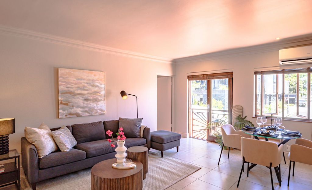 Experience modern minimalist luxury in a sun-drenched, move-in-ready furnished corner apartment in the highly sought-after Sea Point area, offering immediate occupancy with excellent Airbnb potential and 24-hour security.