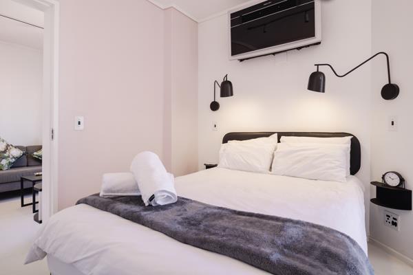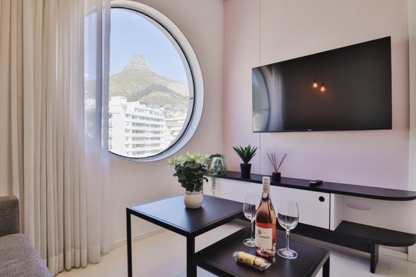 The apartment features a charming private step out balcony off the bedroom, ideal for morning stretches with views toward Lions Head a small luxury that we love. The building has 24 hour manned security, generated lift and everything you need just downstairs.