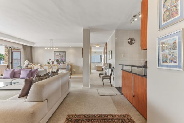 Three large bedrooms provide comfortable accommodation, with the main bedroom featuring an en-suite bathroom, complemented by a family bathroom and a separate guest loo. A substantial study offers excellent flexibility and could easily serve as a fourth bedroom or work-from-home space. Immaculately maintained this apartment presents a rare opportunity to modernize and add value. Additional features include a garage, storeroom and parking bay. An exceptionally convenient location close to the promenade, shops, and restaurants.