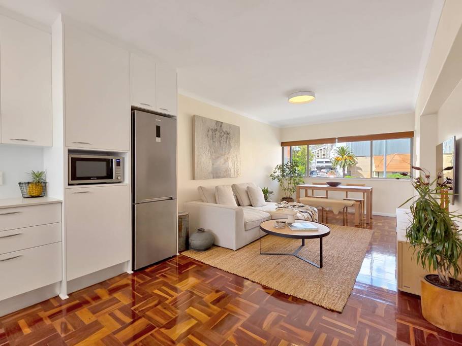 This beautifully renovated apartment is perched right by the Sea Point promenade, literally a step across the road to the ocean. Imagine...sea views from your lounge and kitchen, mountain views from your study and bedroomwhat more if you combine that with the most beautiful parquet flooring and finishes that whisper pure, modern style and class