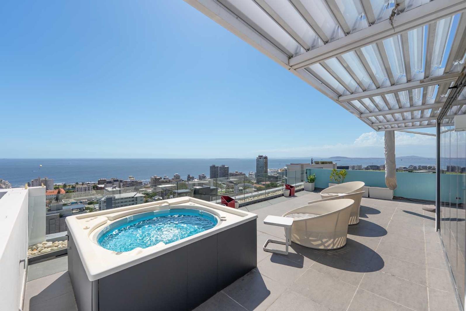 Nestled high above the vibrant Atlantic Seaboard, this exceptional double-storey penthouse offers an unparalleled blend of grandeur, seclusion, and breathtaking panoramic views. Experience luxury living at its finest with sweeping vistas that stretch from the iconic Signal Hill, across the Sea Point skyline and Cape Town Stadium, to the vast expanse of the Atlantic Ocean, all beautifully framed by the majestic Lions Head.