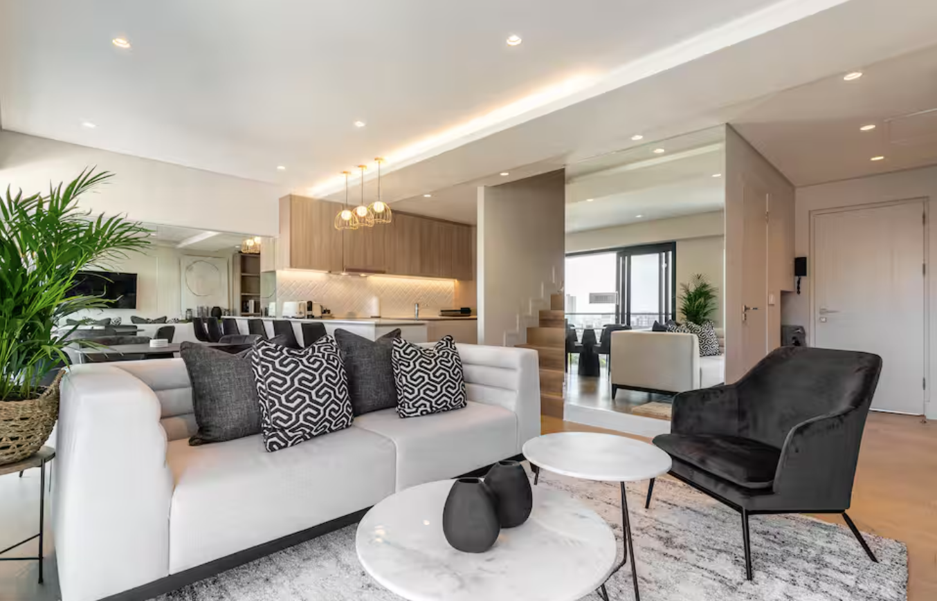 Set high up in sought-after Sea Point, this beautiful duplex is all about light and uninterrupted views. From the moment you step inside, youre met with an open, airy feel, with large windows framing iconic outlooks of Lions Head, Signal Hill and the Atlantic Ocean. The living area flows seamlessly into a modern open-plan kitchen, finished with quality appliances and clean, contemporary touches. Upstairs, the upper level enjoys impressive double-volume ceilings, enhancing the sense of light and elevation, while both en-suite bedrooms are thoughtfully positioned to make the most of the surrounding scenery, with either mountain or ocean views enjoyed from the comfort of your bed.
