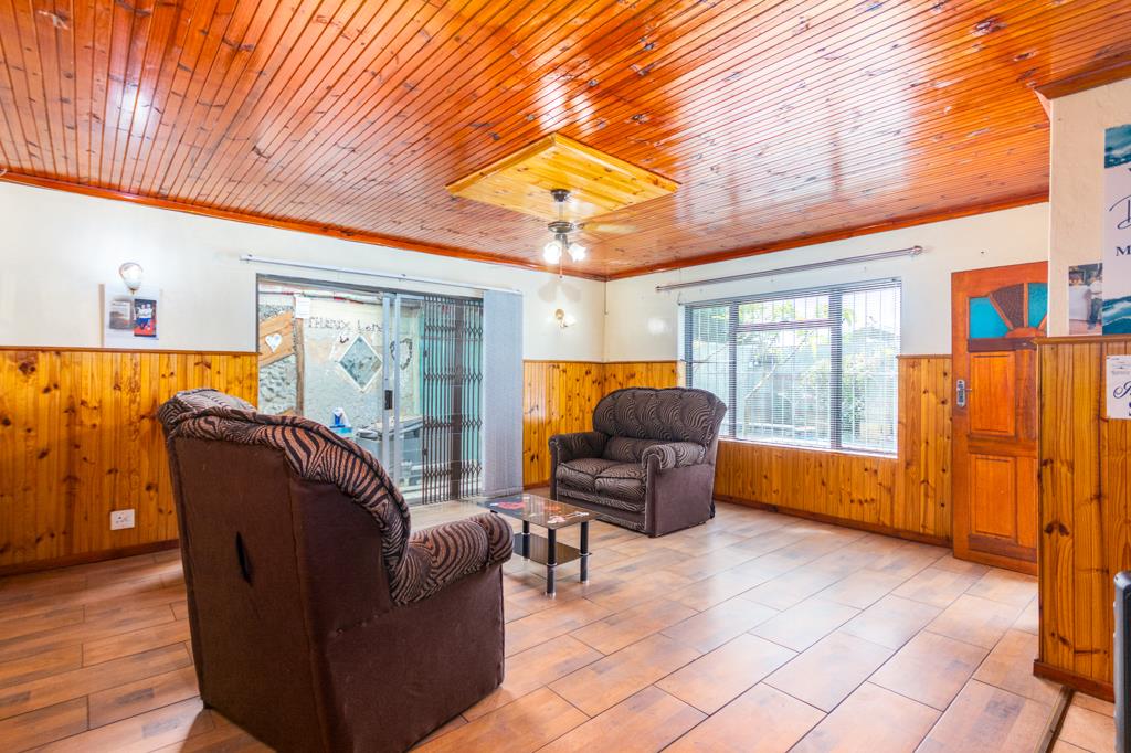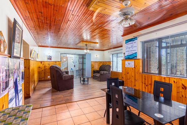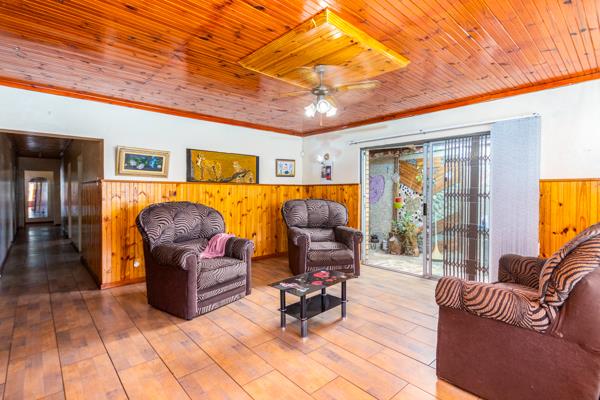 An inviting entrance leads into a spacious lounge and dining area, complemented by a second living room with a cosy indoor fireplace. The large kitchen flows into an enclosed, covered braai and entertainment area, ideal for year-round hosting.