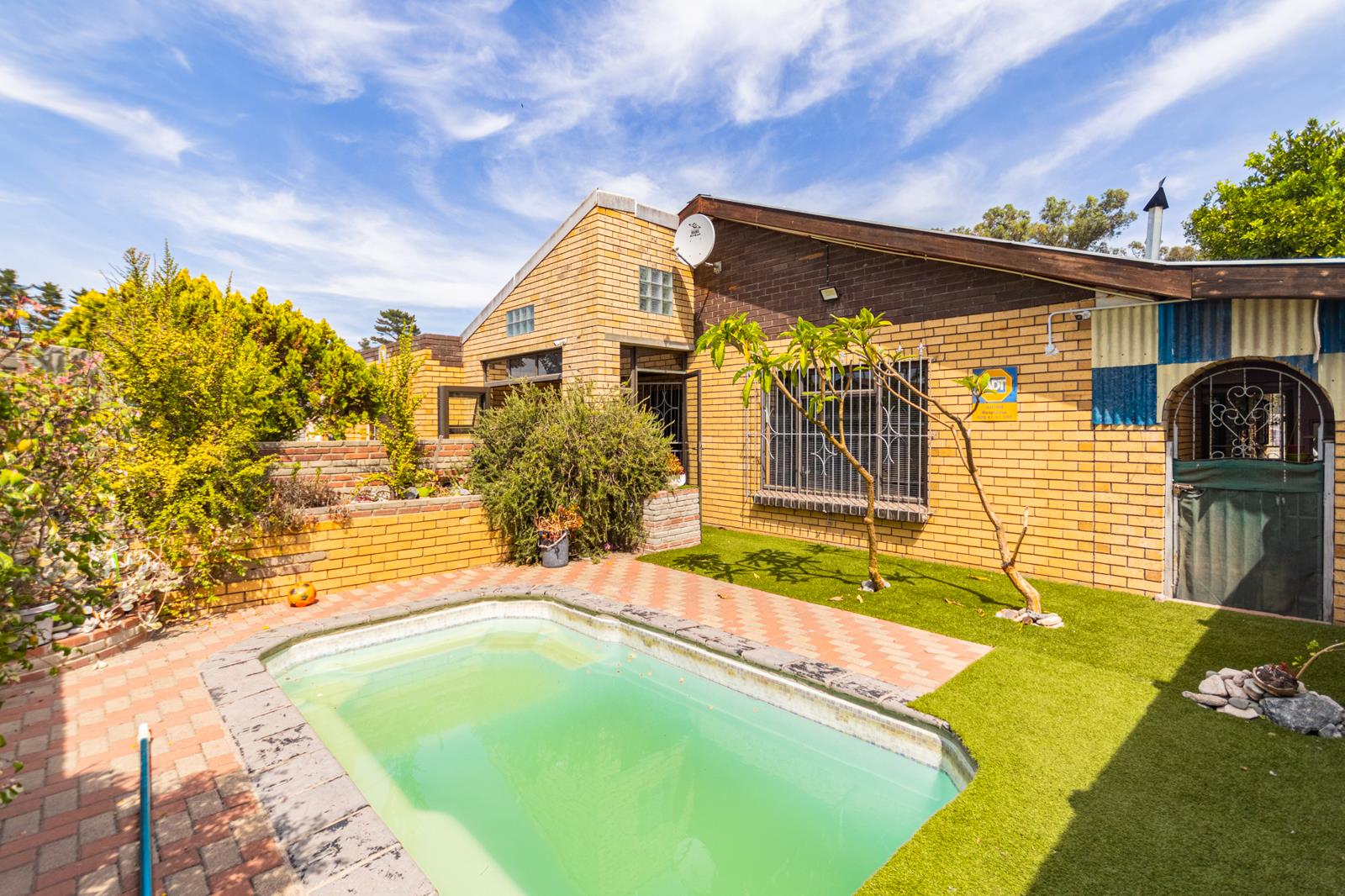 - Swimming pool with low-maintenance artificial lawn