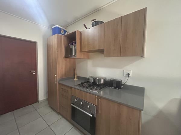 This modern 2-bedroom ground-floor apartment offers stylish living with high-end finishes throughout. The kitchen features beautiful Caesar stone countertops and a gas stove, designed for convenient and efficient cooking. The unit also includes a gas geyser, as well as prepaid electricity, water, and gas for easy budgeting.