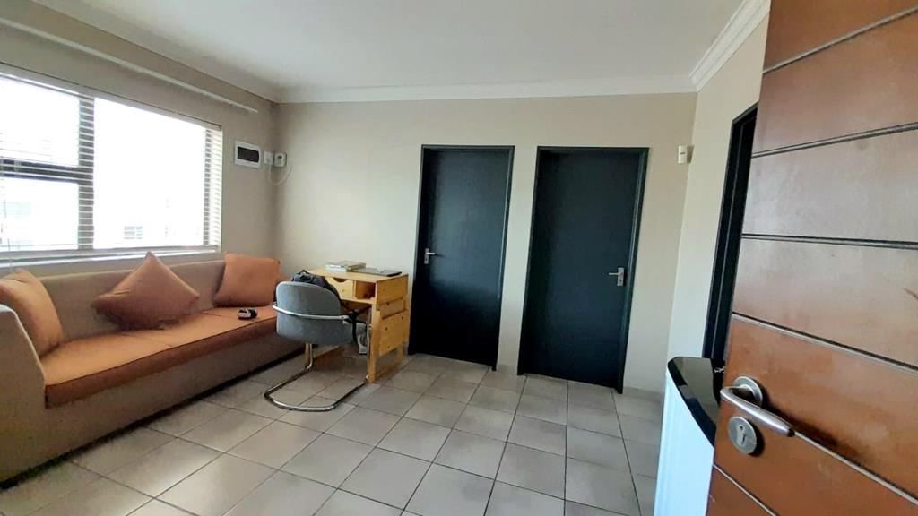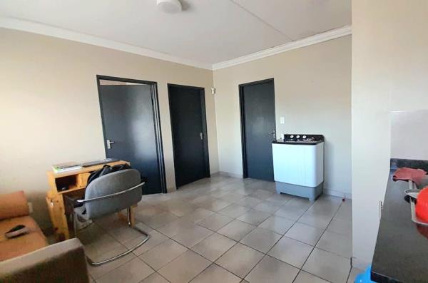 Cozy, open plan lounge and fitted kitchen with tiled flooring