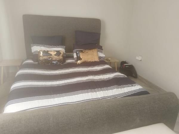 The home offers two comfortable bedrooms, each designed for restful living. The main bedroom features a modern upholstered bed frame and neutral walls, providing a serene retreat. The second bedroom is also well-appointed, benefiting from good natural light and decorative ceiling cornices. Extensive built-in white wardrobes offer practical storage solutions, ensuring a clutter-free environment. A single, well-maintained bathroom serves the household.