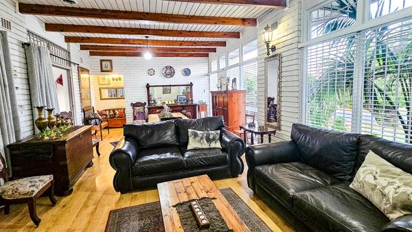 The stoep area is enclosed with concertina doors leading to the garden, creating a seamless indoor-outdoor flow. The kitchen, lounge, dining room, and reading nook all feature fitted blinds for privacy and comfort.