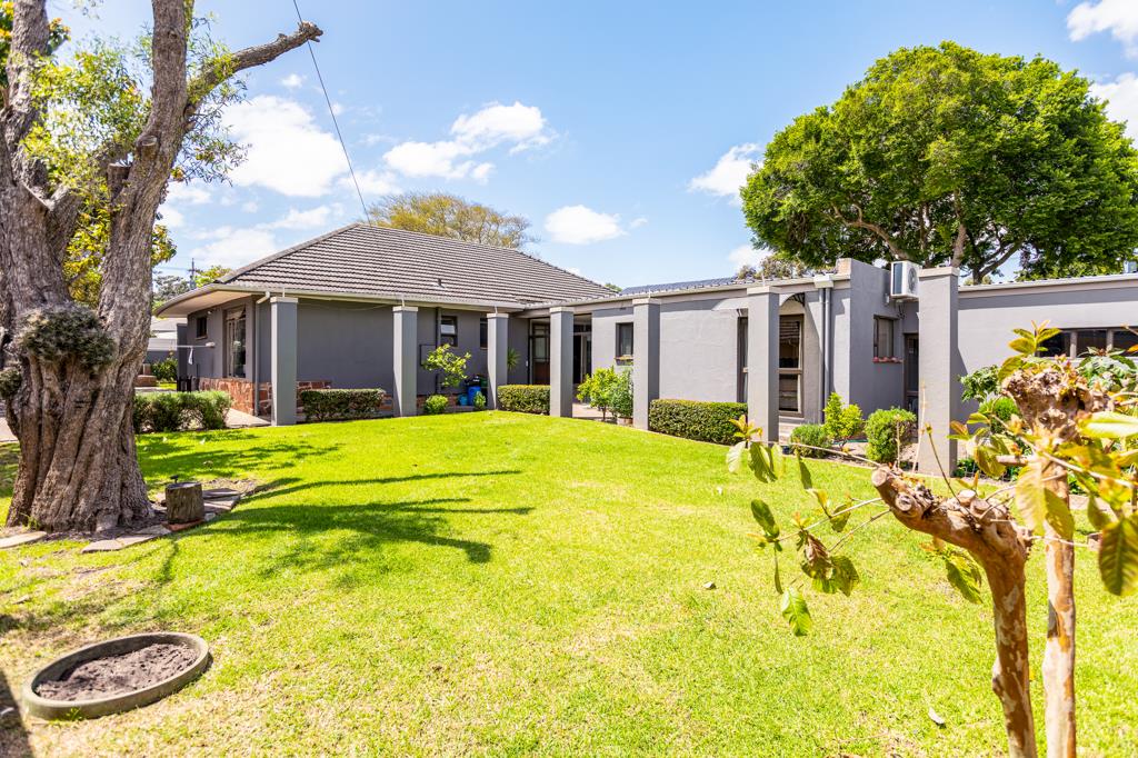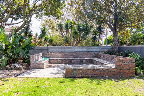Outdoors, enjoy two entertainment areas one off the lounge and another near the braai room surrounded by a lush, established garden with fruit trees, vegetable patches, and low-maintenance paving.