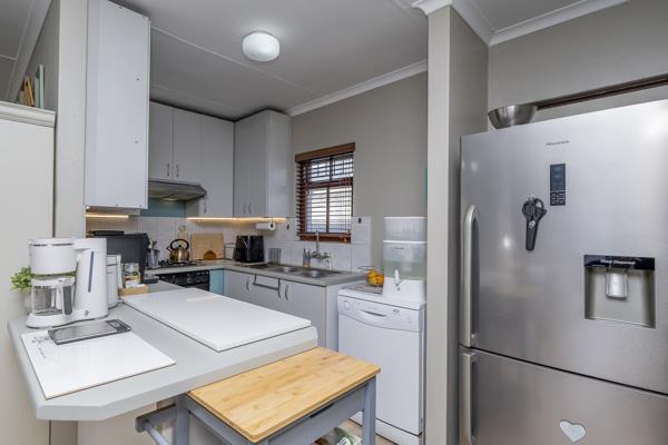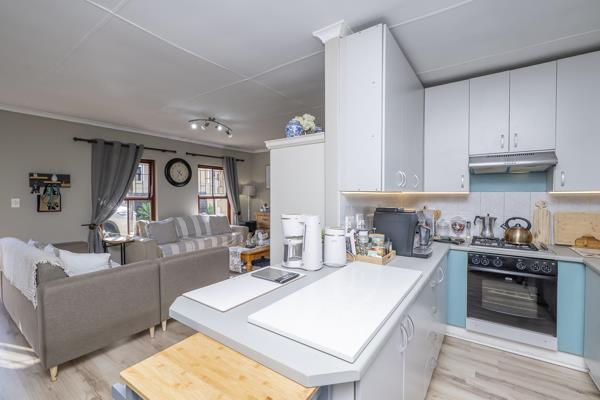 The sunny lounge welcomes you in, flowing effortlessly into an indoor braai area thats perfect for year-round entertaining. The open-plan kitchen is both practical and stylish, fitted with built-in cupboards, a gas hob, under-counter oven, and extractor fan ready for everything from quick breakfasts to big family dinners.