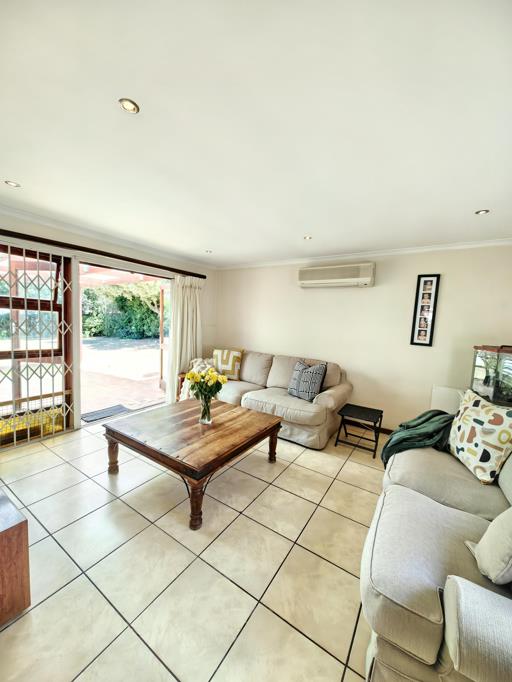 Accommodation includes three sunny, comfortable bedrooms, all fitted with built-in cupboards. The main bedroom opens directly onto the garden, providing a peaceful retreat. Two bathrooms service the home a family bathroom with bath and a main en-suite with shower.