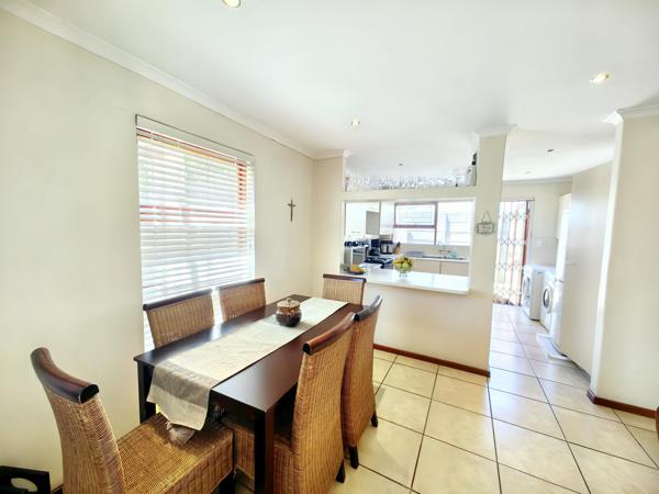 The open-plan lounge welcomes you with an abundance of natural light and flows seamlessly through double doors to a covered patio, creating the perfect space for relaxed indoor-outdoor living. The dining area, conveniently located next to the kitchen, makes everyday living and entertaining effortless.