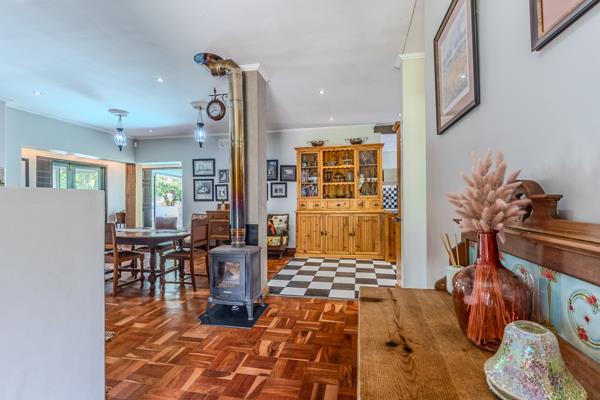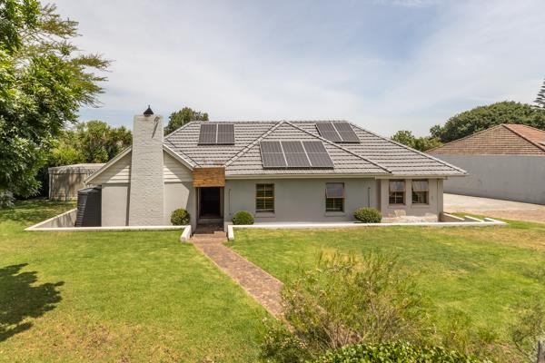 The garden is thoughtfully planned and meticulously maintained, benefitting from an automated sprinkler system and borehole for water supply. A water filtration system directs purified water into the home, while the solar system and batteries contribute to lower running costs for this lovely residence.
