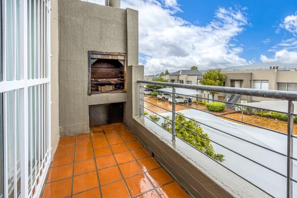 The open plan living area has sliding doors out to a very spacious balcony with a fitted braai.