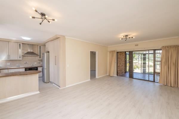 Inside, the home features an open-plan kitchen that flows seamlessly into a spacious living area, creating a warm and inviting space for everyday living. The additional sunroom extends the living area and can easily be converted into a dedicated braai room, making it ideal for year-round entertaining. The garden also offers a covered veranda for those early morning coffees or outside dining with family and friends. All three bedrooms are generously proportioned, with two neat bathrooms. The property includes a single garage and an extra parking bay for added convenience.