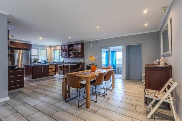 Upon entering, you''re welcomed by a large open-plan lounge and braai area, with a built-in braai, ideal for year-round entertaining. This space flows effortlessly into the heart of the home, where you''ll find a dining room and open-plan kitchen, equipped with ample cupboard space, island with hob, eye-level oven, breakfast counter, and granite tops. Separate living area with aircon. Laundry room. Dedicated study with sliding doors offers direct access to the garden, making it a perfect work-from-home space or quiet retreat. Four bedrooms, all fitted with built-in cupboards.