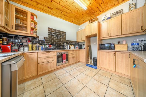 Spacious open plan living areas. Designer kitchen with quality finishes, built-in cupboards with granite counter tops, high end built-in stove, sliding doors leading to a private braai and entertainment area.