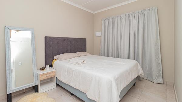 Both bedrooms offers space and built-in cupboards and the bathroom is modern.