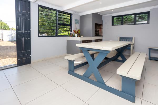 Outside, the neat garden offers plenty of space for outdoor fun. The braai room is perfect for hosting get-togethers while the kids enjoy the yard. The property is fully fenced, giving you peace of mind for both children and pets.