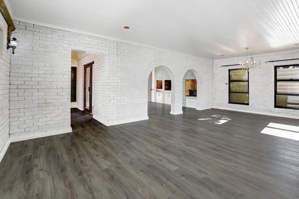 The living areas of the house consist of a dining room which is open plan to the kitchen, a cosy family room centre to the living areas, a reception room with a built-in braai and a coal stove as well as another living area which could be a lounge or an entertainment area for a pool table.