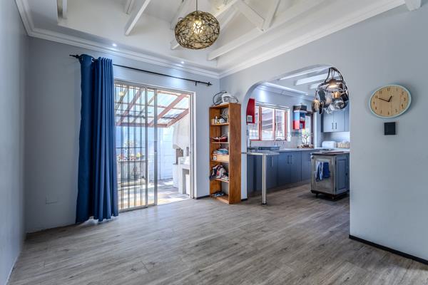 An expansive covered patio extends your living space outdoors, ideal for year-round braais, relaxed gatherings, or simply unwinding with a view of the garden.