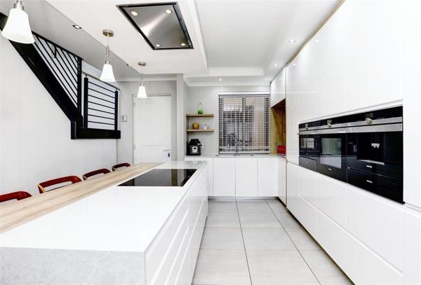 Quality is the name of the game in this lovely apartment - the kitchen is upmarket and uniquely designed - all cupboards are fitted with soft close hinges - appliances masked and hidden with front forming part of the clean look and cupboard finish. The kitchen is totally open plan and provides more than sufficient counter space. Eye level oven, coffee machine and microwave all fitted. The spacious unit has designated dining area, wonderful lounge area fitted with SONOFF sound. there is a seperate study desk / office section.