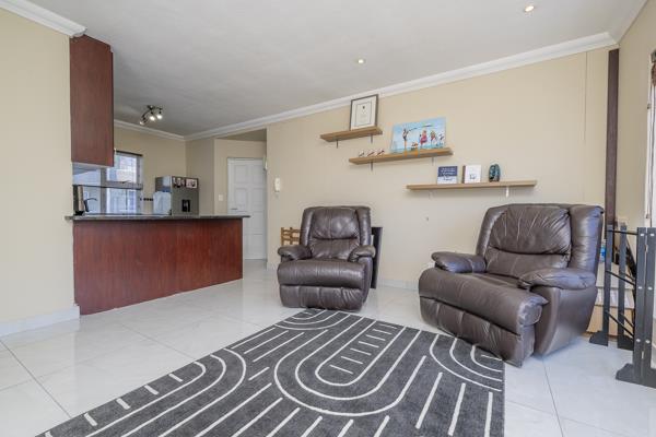 The open-plan granite kitchen and living area is the hub of this apartment, flowing effortlessly to the balcony with views of the Tyger Waterfront.