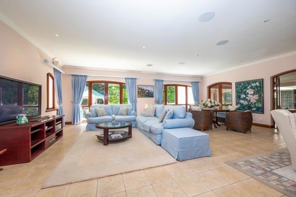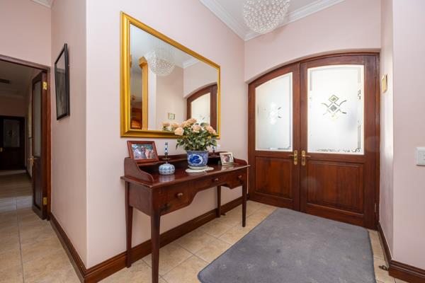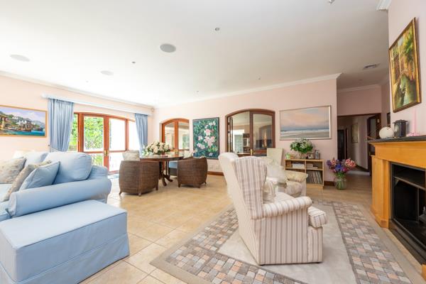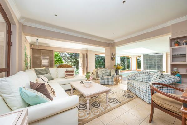 The large open plan reception areas interconnect beautifully, designed with entertainment in mind, the flow is seamless from the kitchen to the dining room and living areas complete with a gas fireplace. This space in turn leads out to an undercover braai area and covered swimming pool with shutters that allow the pool to be completely enclosed or open to the well-established, small garden.