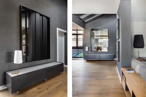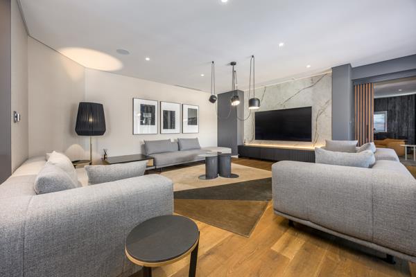 The home boasts 5 spacious en-suite bedrooms, with high-end finishes, including engineered oak flooring, oak cladding, H-Vac central air-conditioning, and underfloor heating.There is a Pajama lounge /TV- room at the bedroom areas. The double-volume ceilings with shadow lines, custom-made doors and frames, imported light fittings, and imported door handles and locksets elevate the overall design.
