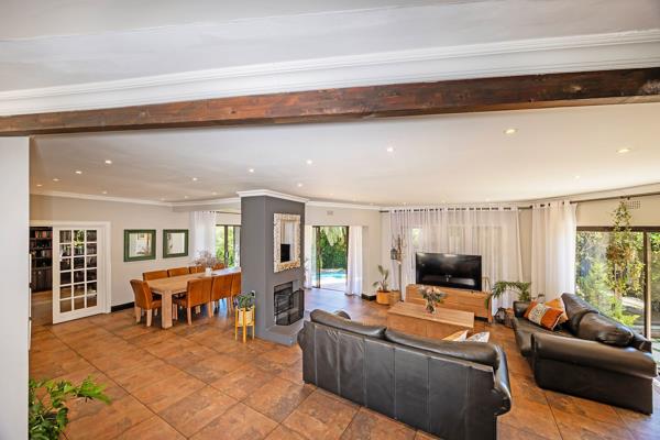 The covered braai area sets the tone for long summer evenings, while the sparkling swimming pool invites family fun and relaxation. The garden flows effortlessly around the home, with sunny spots for morning coffee and shaded corners ideal for afternoon reading. Whether its the pink hues of dawn or the glowing gold of late afternoon, the view is a constant reminder of the natural beauty that surrounds this home.