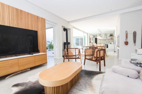 It is finished off with floating cement floors, IPE wooden decking, double glazed glass doors and windows, 2 heat pumps for the geyser and pool, 5 KVA inverter system, an indoor stainless steel fireplace and a Morsoe Scandinavian combustion fireplace.