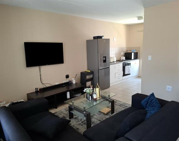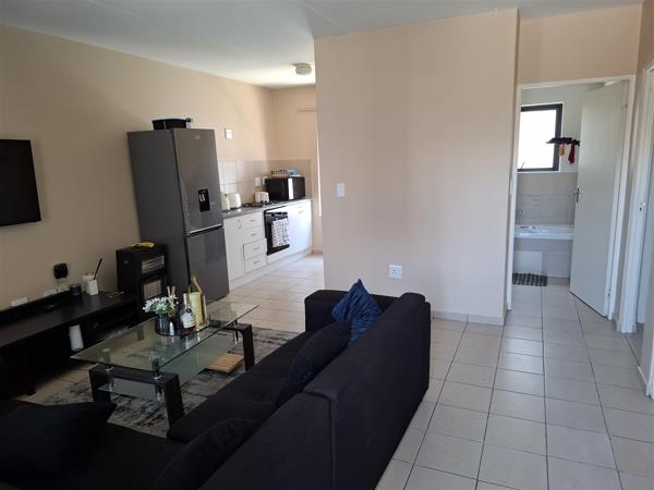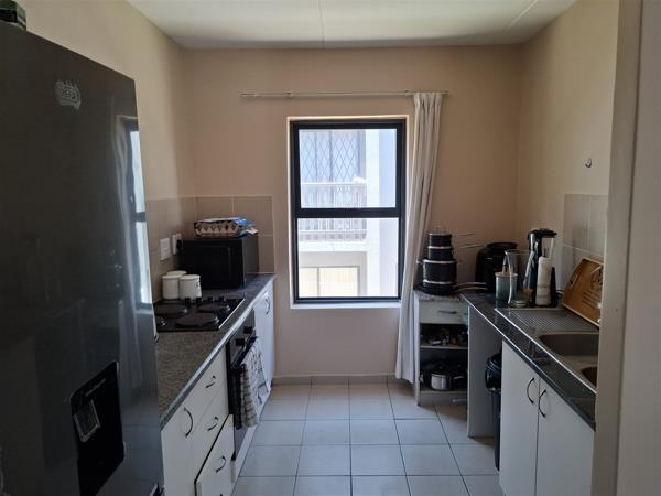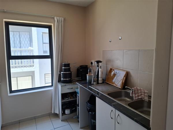 The unit offers two spacious bedrooms, fitted built-in cupboards and tiled floors. The open plan kitchen flows seamlessly onto the lounge area. The whole flat has been tiled throughout for easy living. To keep the cook happy, the kitchen is equipped with built-in cupboard, an oven and hob, as well as a water point.