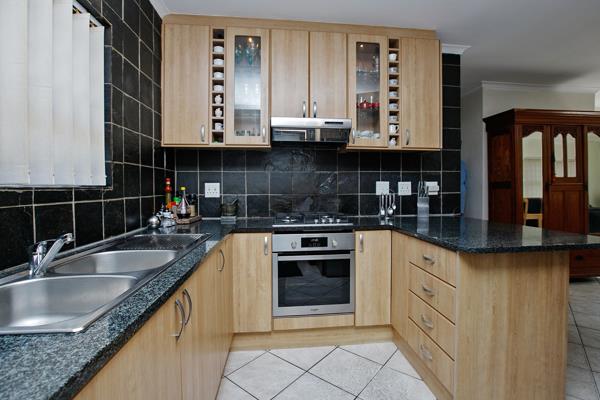 The kitchen is neatly finished with granite countertops and a built-in stove, providing a practical and attractive space for everyday cooking. The lounge area is warm and inviting, perfect for relaxing with family or entertaining guests.