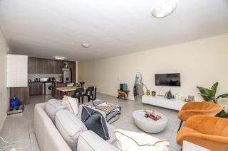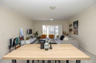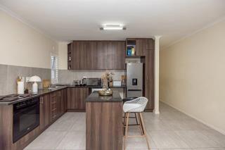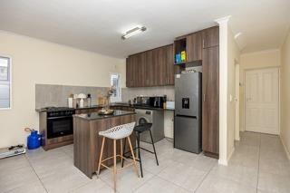Step into this inviting open-plan residence located in the vibrant suburb of Parklands, Blouberg. The spacious living and dining areas flow seamlessly into a modern kitchen, featuring sleek dark wood cabinetry, stainless steel appliances, and a practical island with seating. Large sliding doors ensure abundant natural light, creating a bright and welcoming atmosphere throughout the main living space, which is finished with easy-to-maintain tiled flooring.