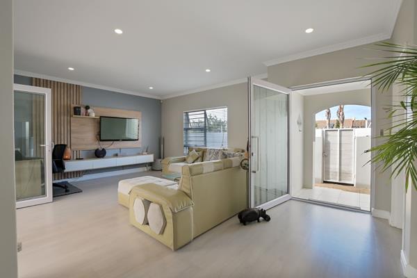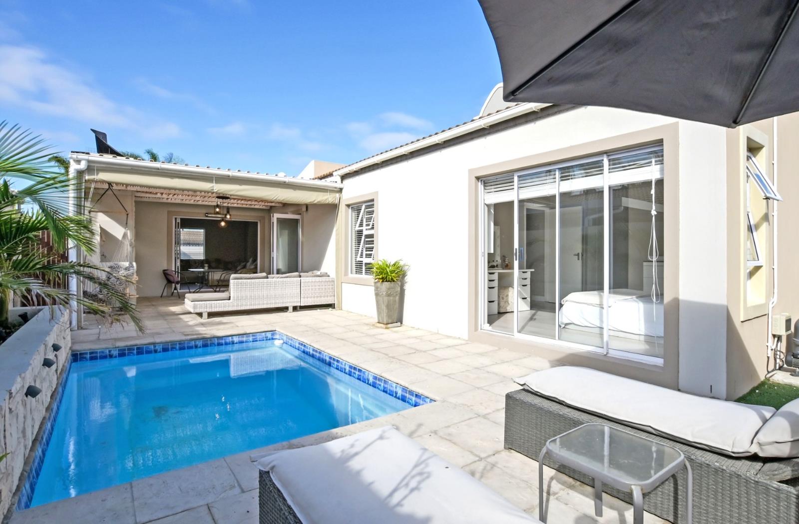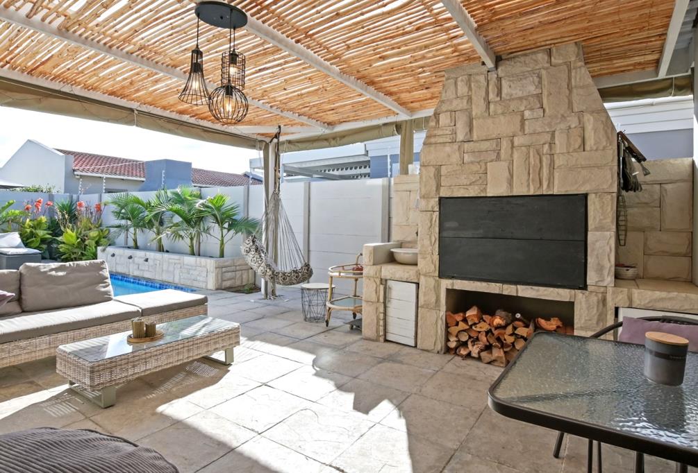 Outside is where this property truly shines. An enclosed garden offers privacy and peace of mind, complete with a charming splash pool perfect for cooling off on warm summer days. The covered patio, fitted with a built-in braai, is a standout feature and can be fully enclosed or opened up with weather blinds, allowing for year-round entertaining no matter the conditions.