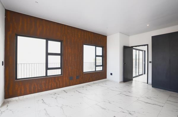 The open-plan living spaces include a sleek, modern kitchen with separate scullery, a stylish pyjama lounge, and a guest toilet. Entertain effortlessly in the undercover braai area, or step out onto the generous balconies offering breathtaking views of Table Mountain and Durbanville Hills.