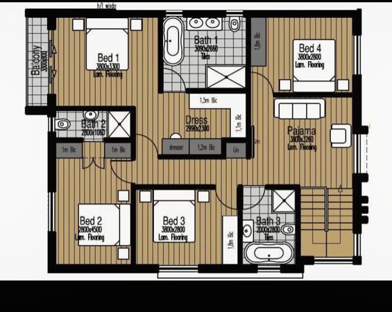 Luxurious main bedroom with a walk-in dressing area,fully equipped en-suite bathroom with private sliding door leading to the balcony for fresh air and relaxation enjoying the sunset.Second bedroom with its own en-suite bathroom,while other two additional bedrooms sharing a modern full bathroom,pajama lounge family lounge great for private relaxation.