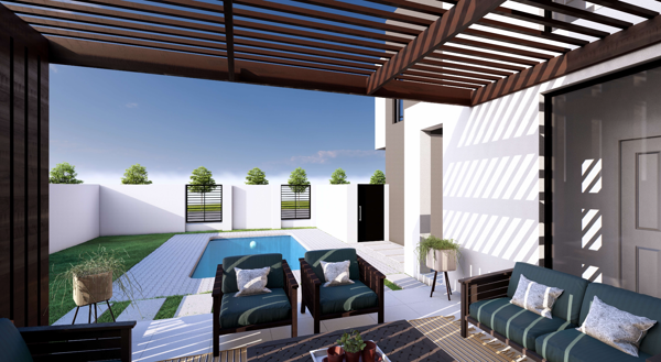 The residence has been thoughtfully designed for comfort and entertaining, featuring a contemporary chefs kitchen with a central island, complemented by a separate scullery and dedicated laundry area. The expansive open-plan living and dining areas flow seamlessly into an enclosed braai room, which opens onto the patio which is ideal for entertaining year-round.