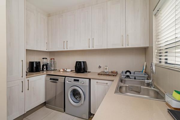 Comfort is assured throughout the year with air-conditioning installed throughout the home. The private, well-protected garden is easy to maintain and features a sparkling swimming pool, creating a tranquil outdoor retreat. Additional features include a 7.5kW inverter with three batteries and twelve solar panels, an irrigation system, alarm system, clear burglar bars, and a double automated garage.