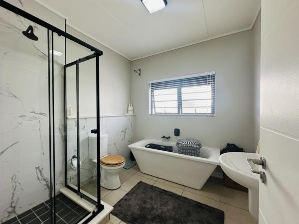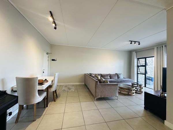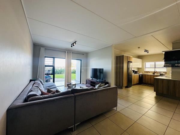 This stylish 3-bedroom, 2-bathroom ground-floor apartment in the highly sought-after Fynbos Estate offers the perfect balance of modern design and secure living. The open-plan layout features a fully fitted kitchen with a washing machine, dishwasher, and fridge included in the sale, seamlessly flowing into a bright lounge. Sliding doors open onto your private enclosed garden, ideal for entertaining.