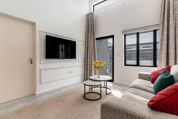 The property features three bedrooms, with two bedrooms fitted with built-in cupboards, while the third bedroom offers flexibility for use as a guest room, nursery, or home office.