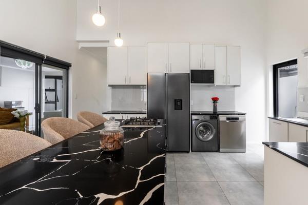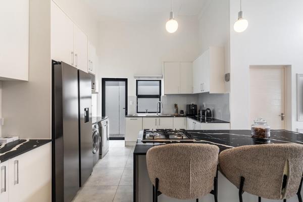 The home boasts an open-plan living and dining area, creating a welcoming space for everyday living and entertaining. The kitchen is well-equipped with ample cupboard space and room for essential appliances.
