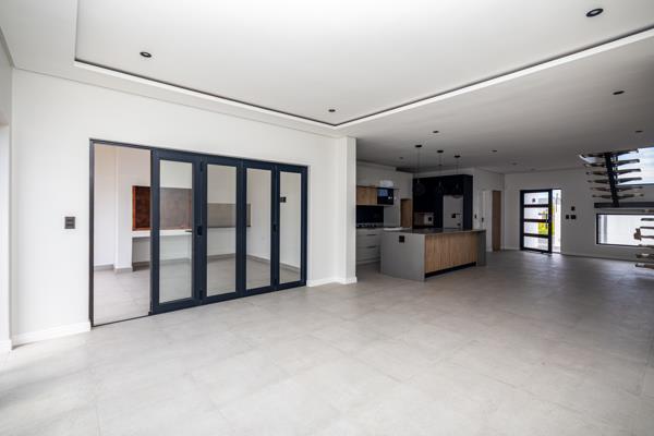Sun-drenched open-plan living areas spill effortlessly through stacking doors onto a covered patio with built-in braai the kind of space that becomes the heart of every gathering, every season.
