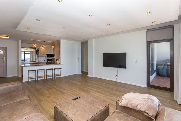 This modern high-rise corner apartment offers breathtaking, uninterrupted views of Table Mountain, the ocean and Robben Island. Recently renovated and beautifully finished, the spacious home features three generously sized bedrooms and two bathrooms, complemented by an open-plan living and dining area designed to maximise light and flow.