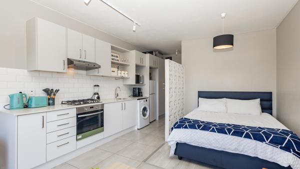 This neat and well-maintained upstairs bachelor apartment offers comfortable, modern living. The open-plan layout is tastefully designed for easy, low-maintenance living. The apartment is fully equipped with contemporary finishes, creating a stylish and welcoming space.